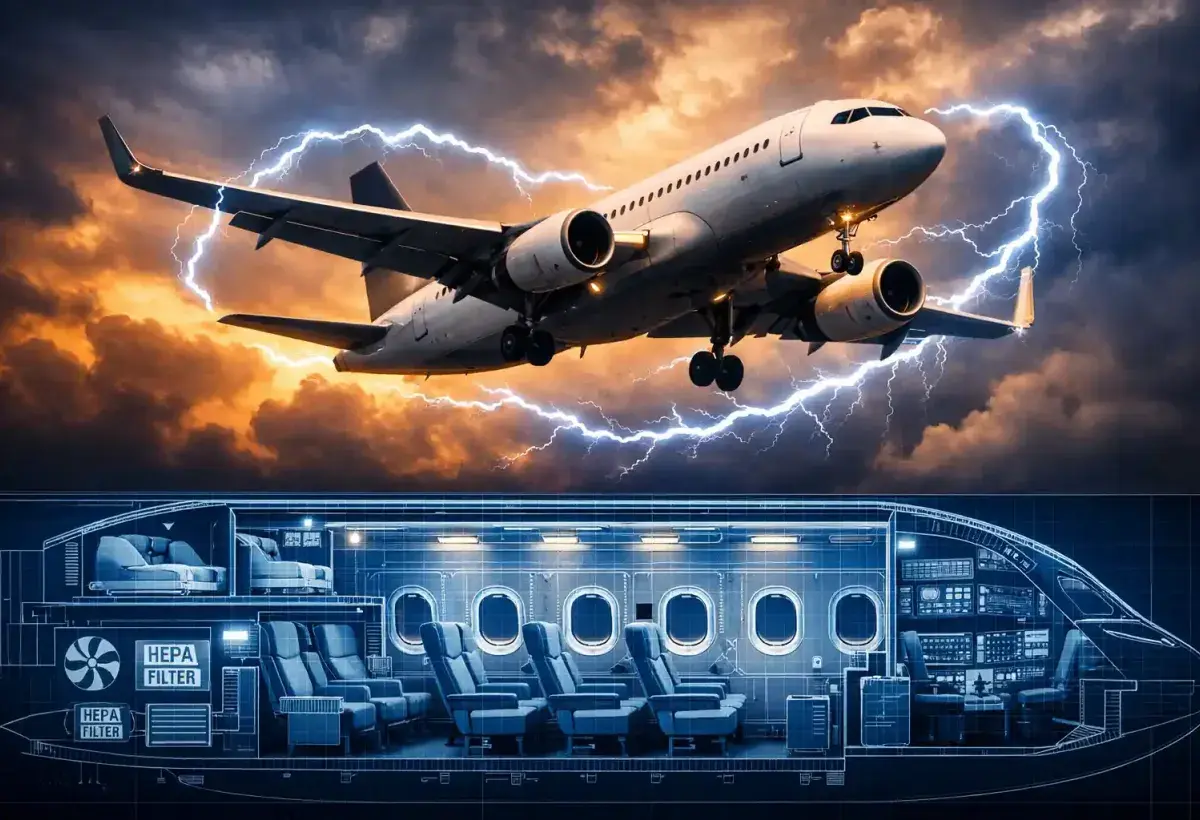 These filters function like medical devices and trap particles at microscopic levels. Fresh air from outside blends with filtered air to maintain pressure and cleanliness. Cabin air moves vertically rather than horizontally which reduces the spread of particles between rows. Most contamination in air travel results from touching tray tables armrests or restroom surfaces rather than breathing circulated air.
